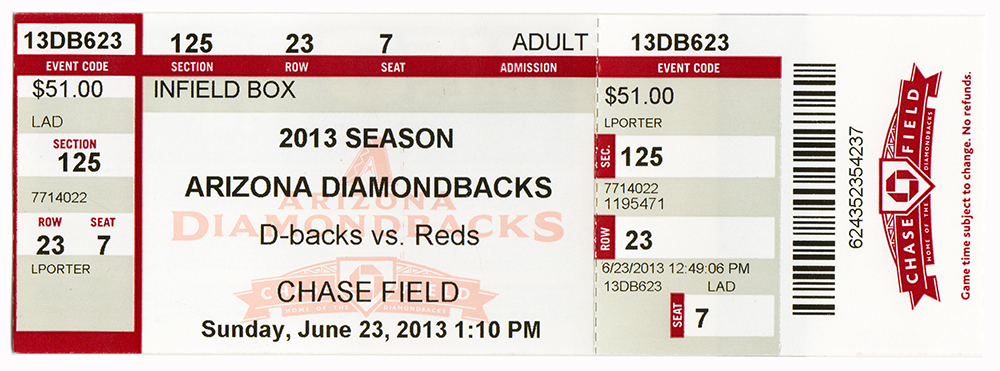 When I decided to attend a conference in Scottsdale, Arizona at a resort called The Boulders, I noticed that because of St. Jean Baptiste Day, I didn’t have to be back in the office for work on the Tuesday of the coming week. Everyone else flew out on the Saturday but I decided to stay one extra day and take in another Baseball game at a park I never thought I would get the chance to attend; Chase Field for a game between the Cincinnati Reds and the Arizona Diamondbacks.