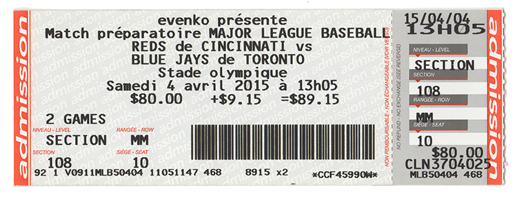 Toronto Blue Jays 2015 Season, Exhibition Game